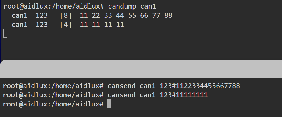 cansend can1 123#11111111可以看到如下输出: