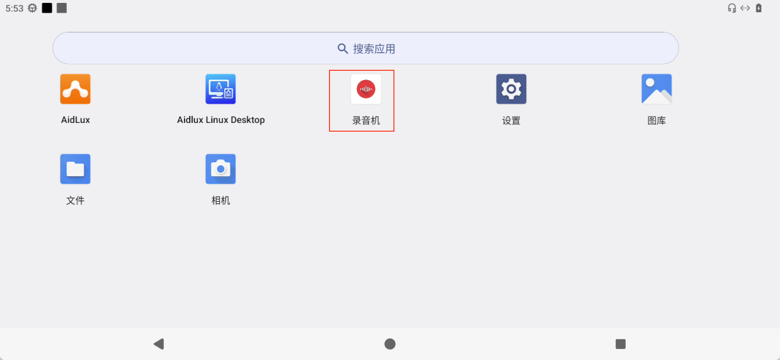 • 点住鼠标左键向上滑,打开 录音机 APP