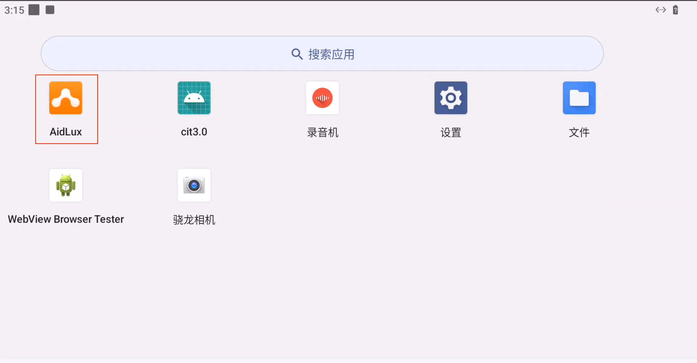 显示设备屏幕后,使用鼠标上划界面即可呼出应用菜单, 点击 AidLux 应用图标即可进入 Ubuntu 22.04 系统界面