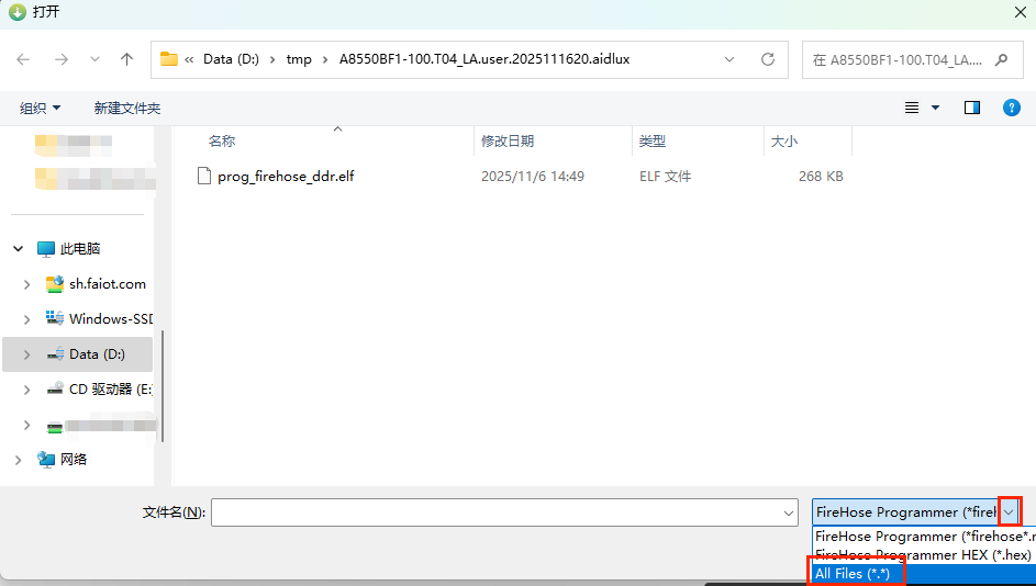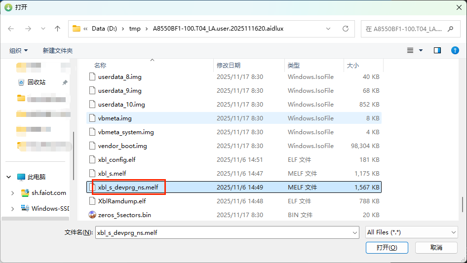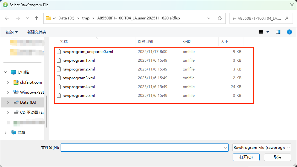 解压 ROM 文件,以 "A8550BF1-100.T04_LA.user.2025111620.aidlux" 版本安装为例。