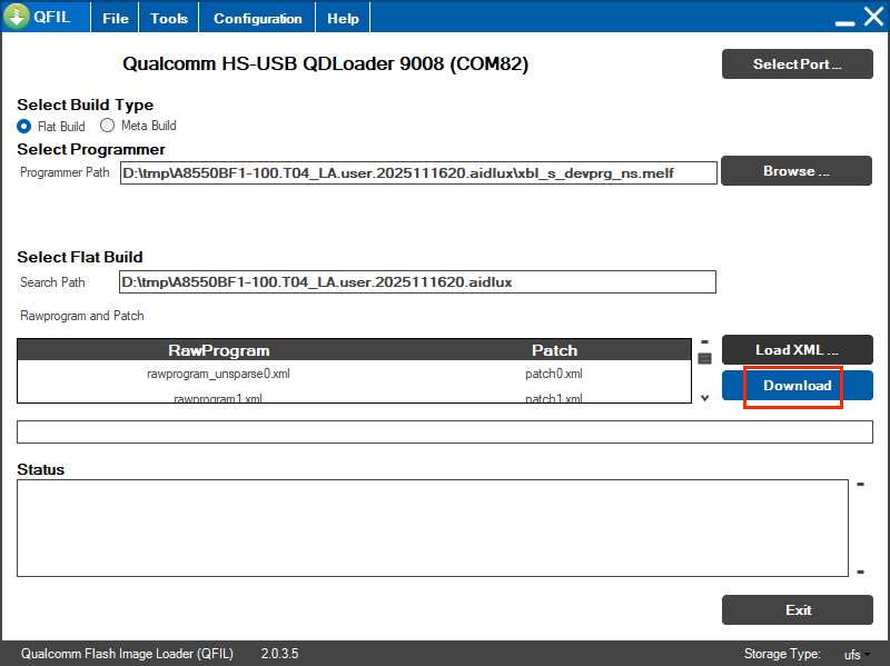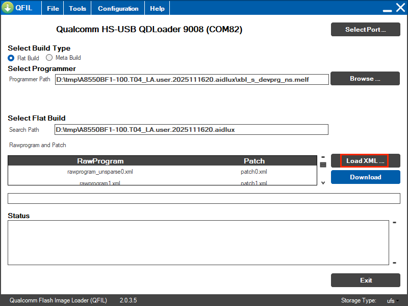 Select Flat Build项,点击下方的Load XML...,选择刷机 xml 文件。