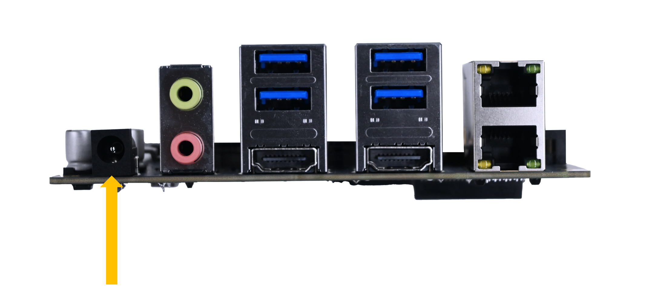 使用标准 DC 圆孔电源充电线电源适配器连接到主板的电源接口
