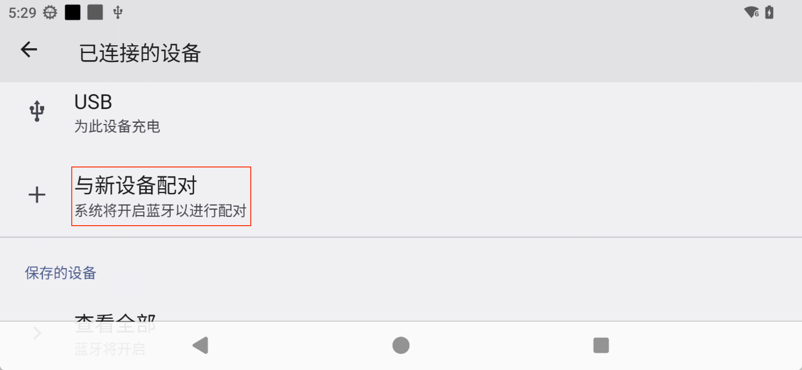 设置-已连接的设备-与新设备配对,进行蓝牙扫描和连接。