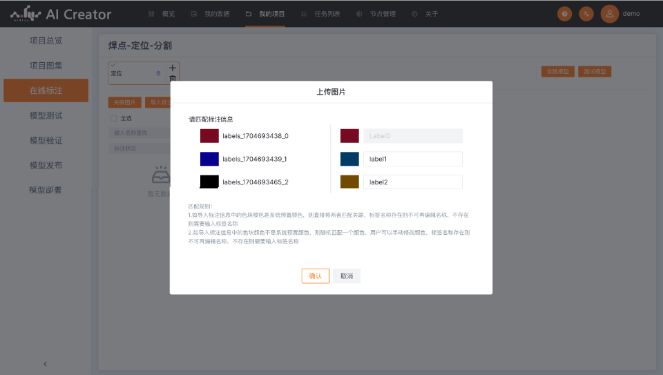 - AI Creator 会识别出已标注数据的相关信息,选择标签将离线标注数据和 AI Creator 标签对应