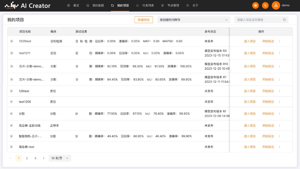 我的项⽬主要⽤于管理⼯程项⽬的标注、模型训练、模型评估、模型验证以及模型发布和下载。