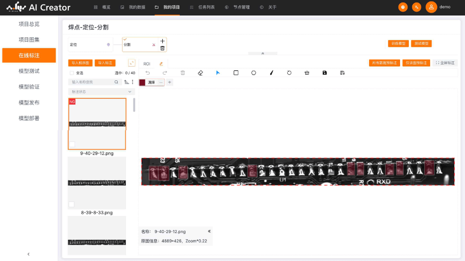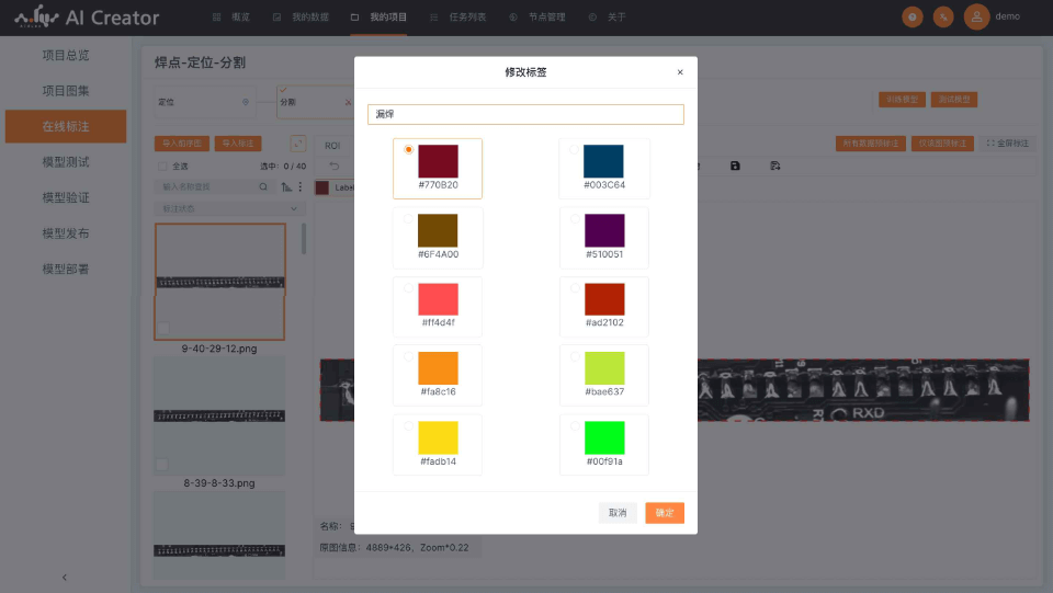 AI Creator ⽀持在线标注,同时也内置了多种标注⼯具